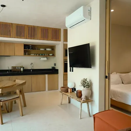 Teva Tulum, Aldea Zama Lägenhet lägenhet ligger i Tulums Zama distrikt och har en terrass. Lägenheten vetter mot trädgården och erbjuder balkong, te/kaffebryggare och teve.